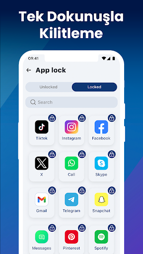🛡️ AppLock, sosyal uygulamaları kilitleyebilir medya: Snapchat, Facebook, WhatsApp, Messenger, telegram, Gmail, Play Store, vb. Artık kimse özel konuşmalarınıza göz atamaz;