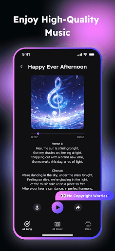 Discover the future of music with AI Music Creator and AI Song Creator. Whether you're an inexperienced lover of music making or an experienced artist, our lyric creator empowers you to song writing and create music, share music, and collaborate with others like never before. Download now and start making music with AI today!