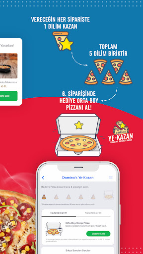 Ye-Kazan programına üye olarak her siparişinizde 1 dilim kazanır, 5 dilime ulaşınca ise bedava orta boy Cazip Pizza kazanırsınız.