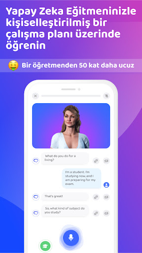 1. Ultra Gerçekçi Avatarlar: Sadece animasyonlarla değil, kişiliklerle öğrenmeyi deneyimleyin. Avatarlarımızla anlamlı konuşmalar yapın, rol oyunları oynayın ve 'yüz yüze' deneyimin keyfini çıkarın. Destekleyici bir öğrenme ortamında kendinizi rahat hissedin ve yargılamadan hatalar yapın.